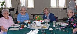 Afterwards, the honorees were treated to a luncheon of Summer Savory Fruit Soup, Salade de Poulet with Toasted Rye Wedges, and Lemon Sorbet. An assortment of cookies was available for their dessert. An old-fashioned “hymn sing” followed. The meal was served by youth from our congregation.