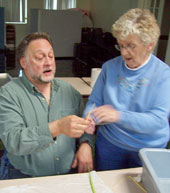 Eileen George, Emily Bellows-Shaffer, Jackie Kinney, Shirley Kinney, Beth Shafranko, Kathy & Greg Dancho, Donna Elkin, Lou DeSeau, Pastor Elkin and Lois Smith spent several hours soaking, splitting and intricately entwining the palms. Some proved more adept than others at certain tasks and an assembly line was developed. The group provided 306 palm crosses for the congregation and friends.