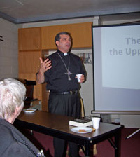 Between services, Bishop Driesen met with about 25 members in the Crossways Room, to discuss the role the Synod in our church life. With a PowerPoint presentation, he focused on the various activities that the Synod supports in the community. He described the Campus Ministry program, which is active in a most colleges within the Synod. The parish nurse program receives Synod support. The Synod helps with financial support to the ELCA universities including Susquehanna University, and also the seminaries within its "cluster" including seminaries in Gettysburg, Philadelphia and South Carolina. Earlier this year, the Synod supported the "Tour d'Revs" ride for the hungry.