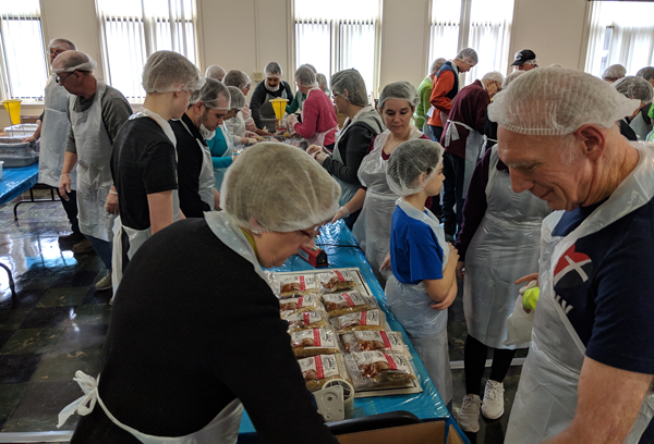 This incredible effort could not have happened without the efforts of many behind the scenes. Thank-you to the many members of St. Mark's who planned the event, set up and helped on the packaging date. Also thanks to the kitchen crew who fed the masses after the work was finished.